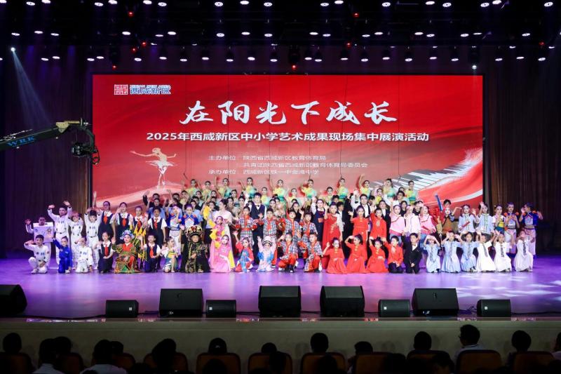 为不断推进学校美育浸润行动,进一步强化学校美育育人功能,6月6日,由西咸新区教育体育局、共青团西咸新区教育体育局委员会主办的“在阳光下成长”2025年西咸新区中小学艺术成果现场集中展演活动在西咸新区铁一中金湾中学举行。近1000名学生、家长和学校代表参与活动。