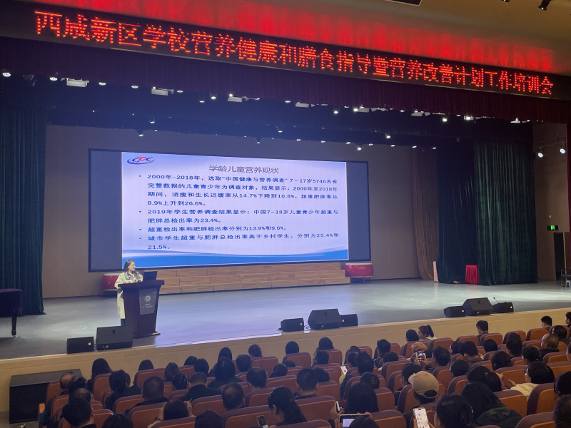 为推进学校营养健康和膳食指导工作,打好集中整治“突击战”,提升营养改善计划工作管理水平,10月23日,西咸新区教育体育局联合西咸新区社会事业服务局举办了学校营养健康和膳食指导暨营养改善计划工作培训会。新区教育体育局、新区公共卫生管理中心业务分管领导参加会议。西咸新区公共卫生管理中心相关负责人员,西咸新区教育体育局各新城工作部分管领导和相关人员,全区中小学、幼儿园、中职学校校长(园长)和相关人员共计700余人参加培训。
