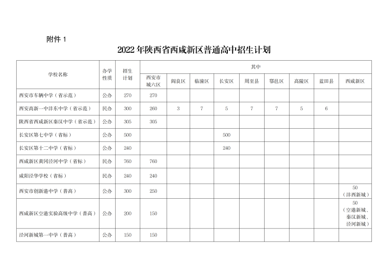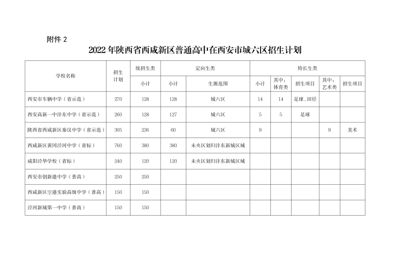 附件2:2022年陕西省西咸新区普通高中在西安市城六区招生计划.png