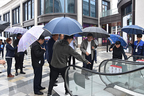 最后,调研组一行深入静安国际万国荟公园了解电梯安全监管工作情况。姚海军重点询问了电梯是否在检验有效期内;安全检验合格标志、安全警示标志是否粘贴到位;应急救援电话是否畅通;自动扶梯及自动人行道的检修盖板、楼层板、防护挡板及梳齿板是否存在安全隐患;电梯维保单位是否具有相应资质及是否定期进行电梯维保;电梯管理人员是否持证上岗;电梯事故应急救援方案是否落实到位等。他强调,特种设备安全责任重大,企业要落实主体责任,市监部门要履行好监管责任,守护好特种设备安全的最后防线,特别是刚承接质监职责的市监分局,要边学习边工作,抓紧摸清底数,突出乐华城、静安国际、原点家具城等特种设备较多部位的管理,加大监管执法监管力度,督促各项制度落实到位,确保广大人民群众的生命财产安全。