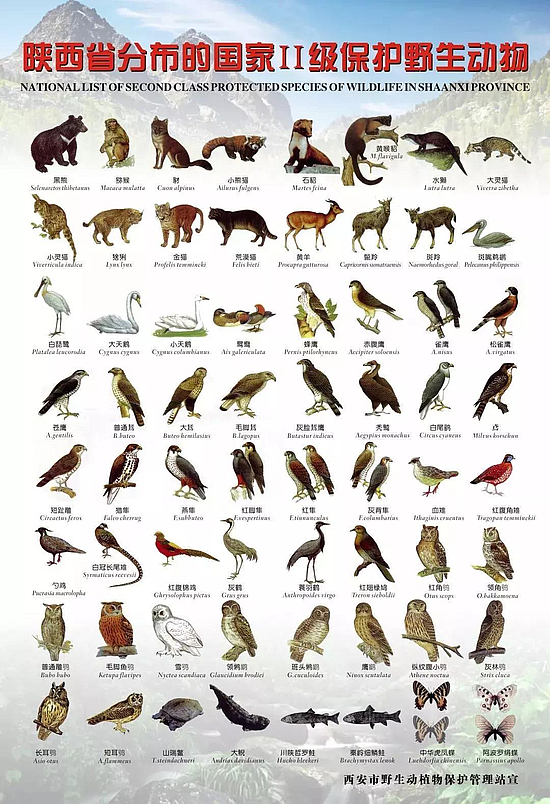 为保护秦岭野生动物资源,陕西省开展打击整治破坏秦岭野生动物资源违法犯罪专项行动,将重点打击非法猎捕、杀害、收购、运输、销售珍贵、濒危野生动物,非法捕捞、杀害国家重点保护的濒危水生野生动物,非法采伐、毁坏珍贵树木或者国家重点保护的其他植物,以及利用互联网非法买卖珍贵濒危野生动物及其制品等违法犯罪行为。 全省各级公安机关将把野生动物迁徙洄游通道、栖息地、繁殖地等区域,尤其是秦岭北麓、南麓六市及其他野生动物资源丰富问题突出的区域,作为打击区域的重中之重。 近日,西安市印发《西安市打击整治破坏秦岭野生动植物资源违法犯罪专项行动实施方案》,将严查严打非法捕猎、杀害国家重点保护的陆生野生动物和挖掘破坏国家重点保护的野生植物等违法犯罪活动。 保护野生动植物 是我们不可推卸的责任 整治重点: 整治内容: 对于秦岭野生动物保护的知识你了解多少呢? 1.保护野生动物有哪些级别? 分为四个级别:即国家一级保护动物、国家二级保护动物、地方重点保护野生动物以及有重要生态、科学、社会价值的陆生野生动物。 2.什么是濒危野生动物? 濒危野生动物是指在其整个分布区或分布区的主要部分中处于有灭绝危险的野生动物;这些野生动物物种的种群已经减少到勉强可以繁殖后代的地步,其地理分布狭窄,仅仅存在于典型地方或出现在有限的、脆弱的环境中。如果不利于其生长和繁殖的因素继续存在或发生,便会很快灭绝。 3.陕西省分布的国家一级保护野生动物有哪些? 16种:金丝猴、大熊猫、云豹、豹、虎、羚牛、白鹳、黑鹳、朱鹮、金雕、白肩雕、大鸨、褐马鸡、遗鸥、丹顶鹤、林麝。 4.陕西省分布的国家二级保护野生动物有哪些? 65种:猕猴、豺、黑熊、小熊猫、石貂、黄喉貂、水獭、大灵猫、小灵猫、猞猁、金猫、荒漠猫、林麝、黄羊、鬣羚、斑羚、斑嘴鹈鹕、白琵鹭、大天鹅、小天鹅、鴛鸯、蜂鹰、赤腹鹰、雀鹰、松雀鹰、苍鹰、普通鵟、大鵟、毛脚鵟、灰脸鵟鹰、秃鹫、白尾鹞、鳶、短趾雕、猎隼、燕隼、红脚隼、红隼、灰背隼、血雉、红腹角雉、勺鸡、白冠长尾雉、红腹锦鸡、灰鹤、蓑羽鹤、红翅绿鸠、红角鸮、领角鸮、普通雕鸮、毛脚鱼鸮、雪鸮、领鸺鹠、斑头鸺鹠、鹰鸮、纵纹腹小鸮、灰林鸮、长耳鸮、短耳鸮、山瑞鳖、大鲵、川陕哲罗鲑 、秦岭细鳞鲑、中华虎凤蝶、阿波罗绢蝶。 5.对野生动物及其栖息地保护的内容有哪些? 县级以上人民政府野生动物保护主管部门开展野生动物野外分布区域、种群数量及结构调查;开展野生动物栖息地的面积、生态状况调查;开展野生动物及其栖息地的主要威胁因素调查;开展野生动物人工繁育等情况需要调查、监测和评估的内容。 6.违法猎捕非国家重点保护野生动物的,有哪些处罚规定? 没收猎获物、猎捕工具和违法所得,吊销狩猎证,并处猎获物价值一倍以上五倍以下的罚款;没有猎获物的,并处二千元以上一万元以下的罚款;未取得持枪证持枪猎捕野生动物,构成违反治安管理行为的,由公安机关依法给予治安管理处罚;构成犯罪的,依法追究刑事责任。