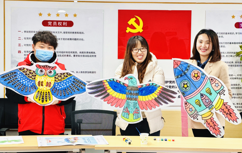 在窑店秦苑一路社区,社工们和辖区群众一起手工制作风筝。社工小苗向前来参与活动的群众详细介绍了风筝的制作流程以及注意事项。一绳一线、一笔一画,大家共同设计绘制了丰富多彩的风筝图案,在风筝上留下对生活美好的期盼与向往。