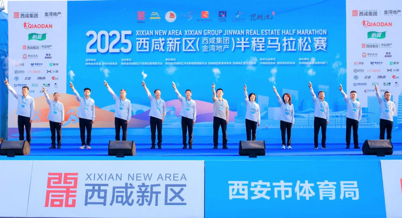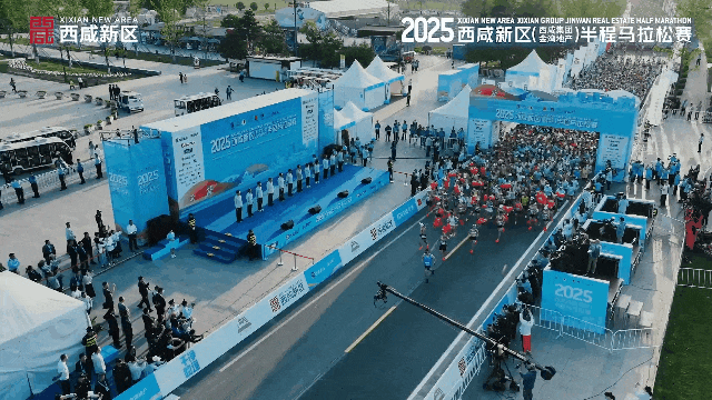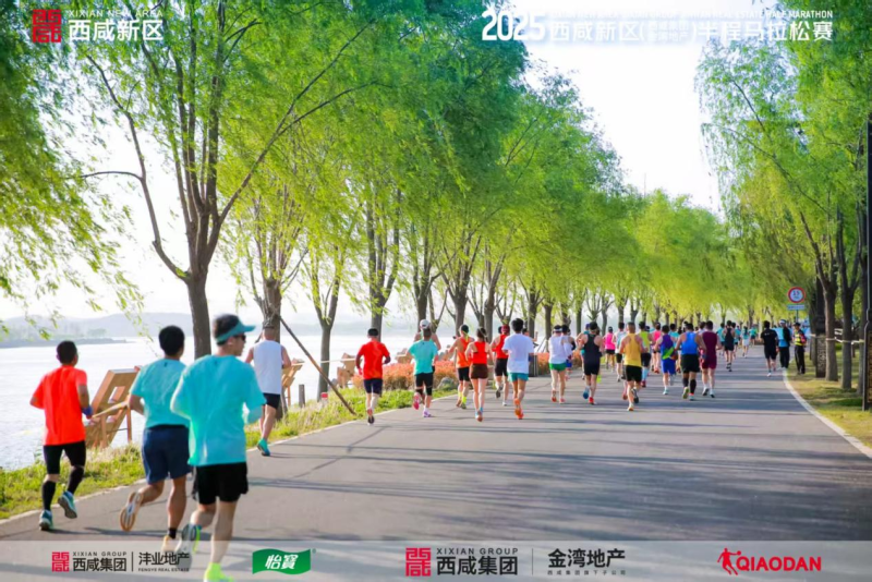 4月20日上午,2025西咸新区(西咸集团金湾地产)半程马拉松赛在昆明池畔鸣枪开跑,万名跑步爱好者齐聚于此,共同演绎一场速度与激情的体育盛宴。