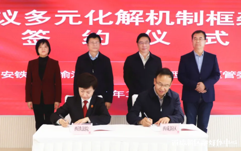 活动现场,西咸新区与西安铁路运输法院签订《关于共同推进行政争议多元化解机制框架协议》。根据协议,双方将以有效预防和化解行政争议、强化府院联动和诉源治理为目标,进一步健全完善行政争议多元化解机制,通过建立联席会商机制、组建西咸新区行政争议多元化解中心、建立巡回审判制度、深化秦创原创新驱动平台法律服务协作等八方面工作,有效保障人民群众合法权益,推进维护行政机关依法行政。
