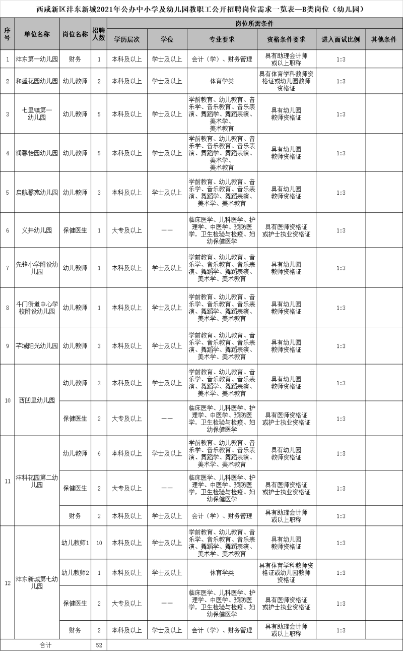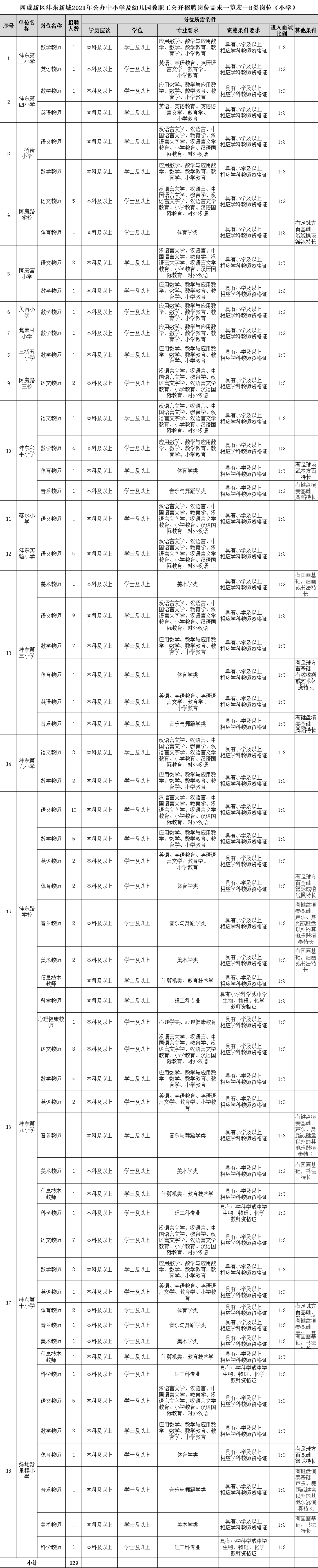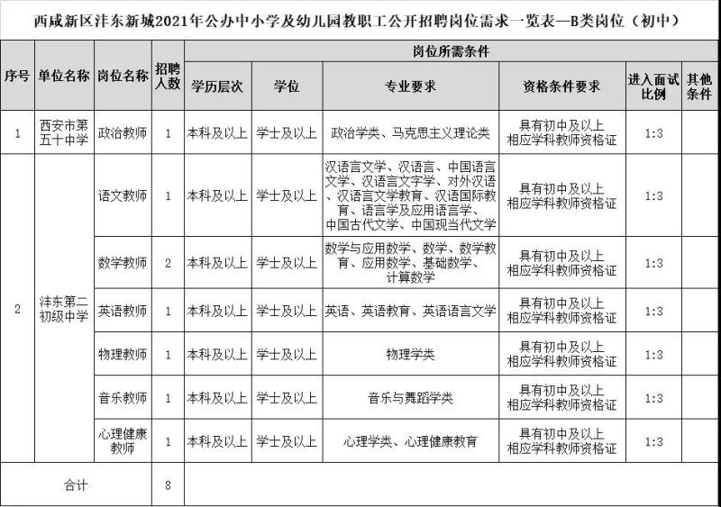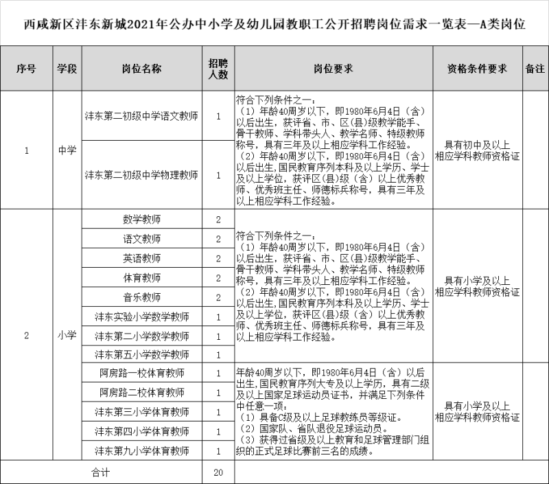西咸新区沣东新城2021年公办中小学及幼儿园教职工公开招聘岗位需求一览表