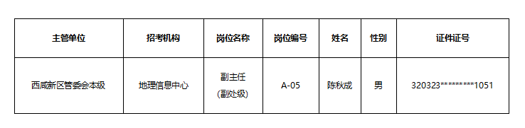 西咸新区2022年度人才招聘地理信息中心副主任岗位拟录用人员公示