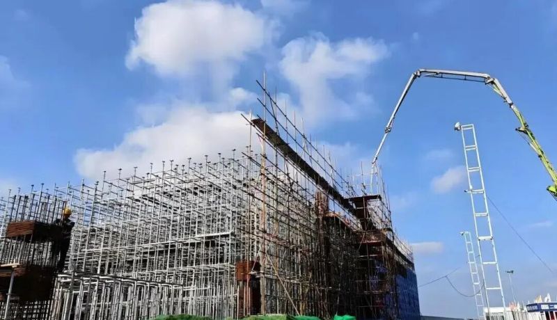 目前,二期项目所有基础结构施工已完成,人防地下室主体结构、场地房心回填及垫层浇筑工作全部结束,一层柱浇筑完成10%,正有序开展满堂架搭设与梁钢筋绑扎作业。