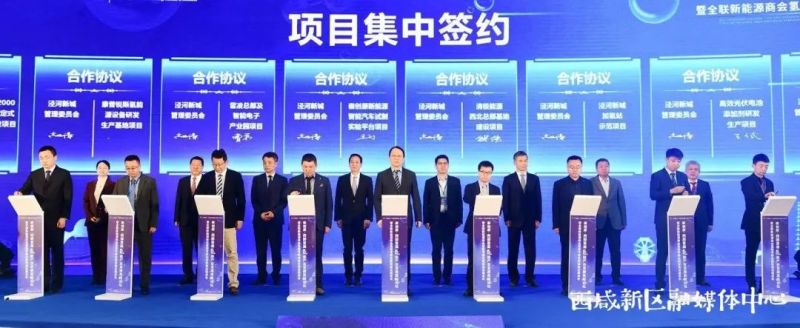 随后在热烈的气氛中,泾河新城与全联新能源商会成功签订战略合作协议并与8家企业集中签订项目合作协议。